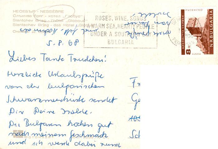 old postcard Slantchev Brjag Hotel Globus postalisch gelaufen Erhaltung siehe scans [WerneD78]
