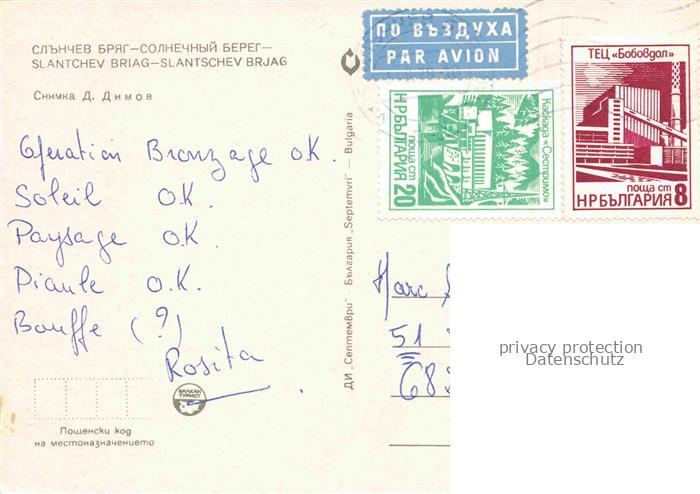74031281 old postcard Slantchev Brjag Kuestenpanorama Strand postalisch gelaufen Erhaltung siehe scans [FriedD77] KatCode: 11090