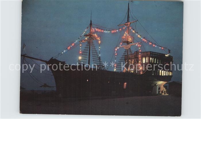 old postcard Slantschev Brjag Bar Fregatte at night postalisch gelaufen Erhaltung siehe scans