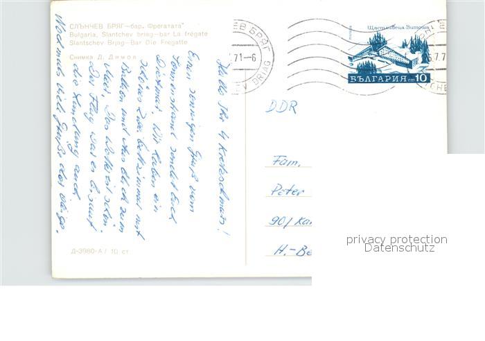 old postcard Slantschev Brjag Bar Fregatte at night postalisch gelaufen Erhaltung siehe scans