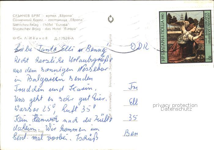 old postcard Slantschev Brjag Hotel Europa Strandpartie postalisch gelaufen Erhaltung siehe scans