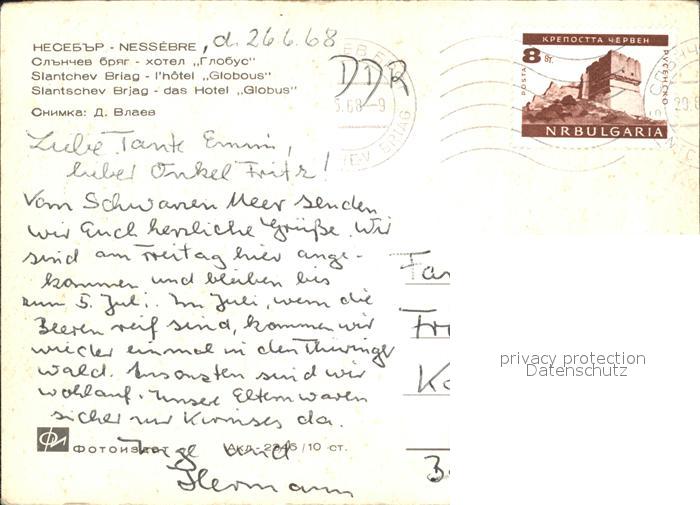 old postcard Slantschev Brjag Hotel Globus postalisch gelaufen Erhaltung siehe scans