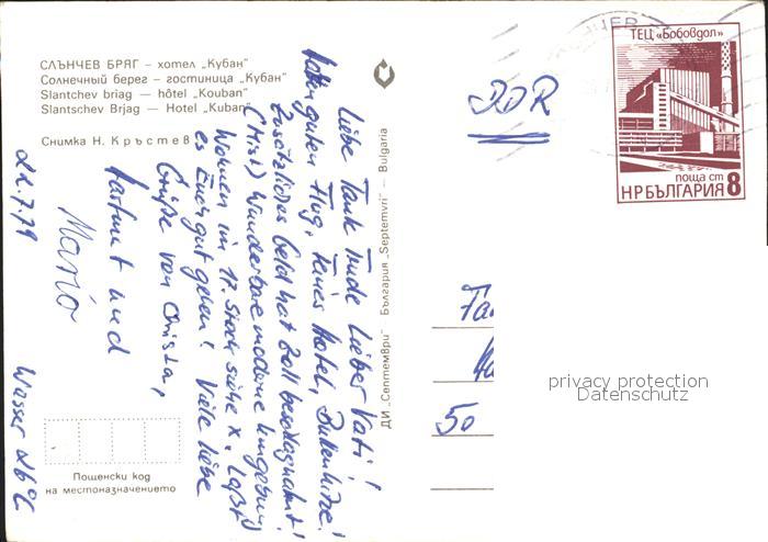 old postcard Slantschev Brjag Hotel Kuban postalisch gelaufen Erhaltung siehe scans