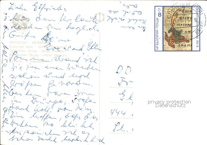 old postcard Slantschev Brjag Hotel Plovdiv postalisch gelaufen Erhaltung siehe scans