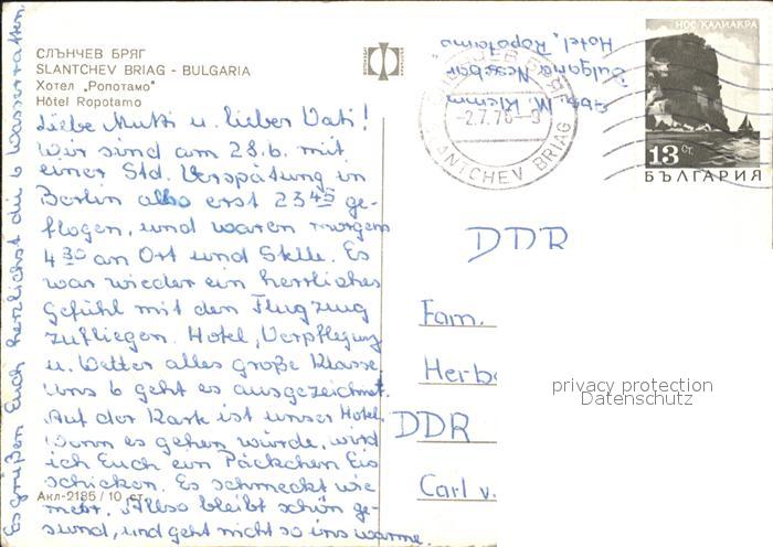 old postcard Slantschev Brjag Hotel Ropotamo postalisch gelaufen Erhaltung siehe scans
