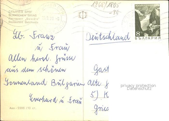 old postcard Slantschev Brjag Restaurant Batchvata postalisch gelaufen Erhaltung siehe scans