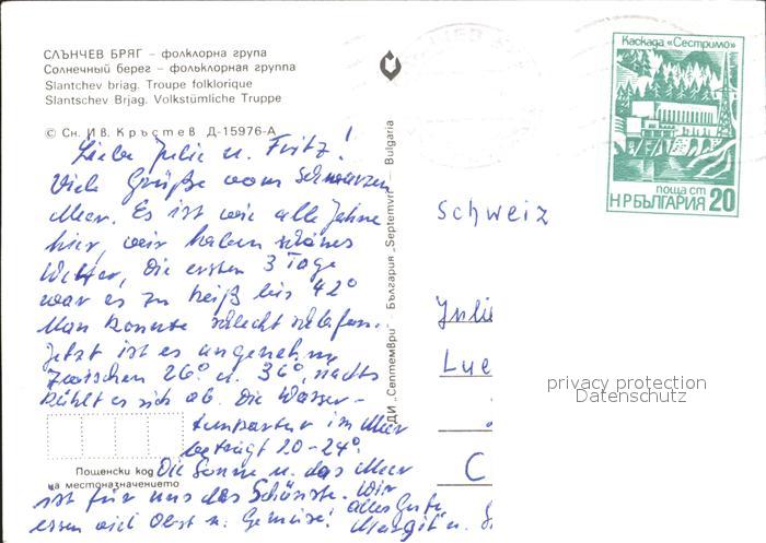 old postcard Slantschev Brjag Strand und Frauen in Tracht Volkstanz postalisch gelaufen Erhaltung siehe scans