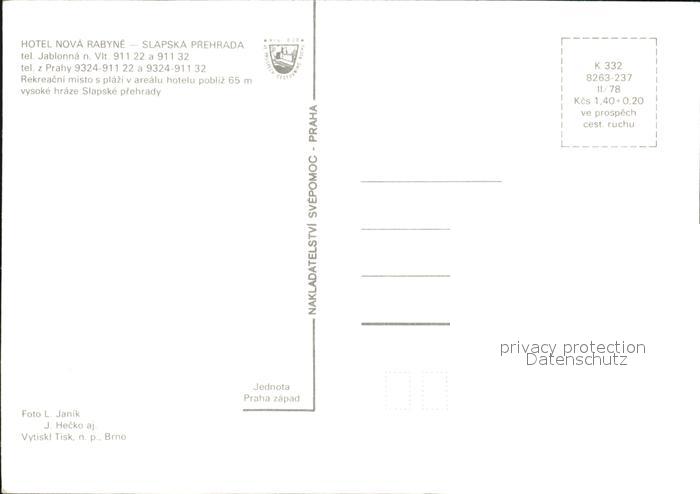 Slapska Prehrada Hotel Nova Rabyne Gastraeume Strand Staumauer postalisch nicht gelaufen Erhaltung siehe scans