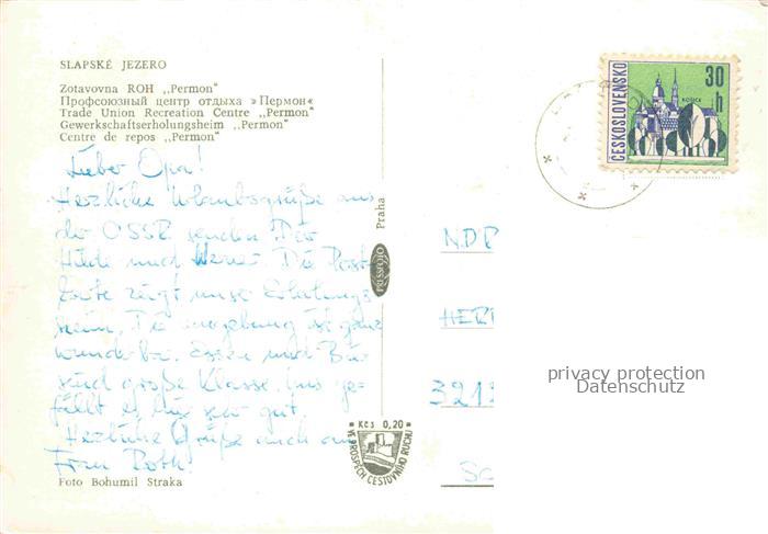 74044309 old postcard Slapske Jezero CZ Zotavovna ROH Permon postalisch gelaufen Erhaltung siehe scans [WerneD78] KatCode: 11520