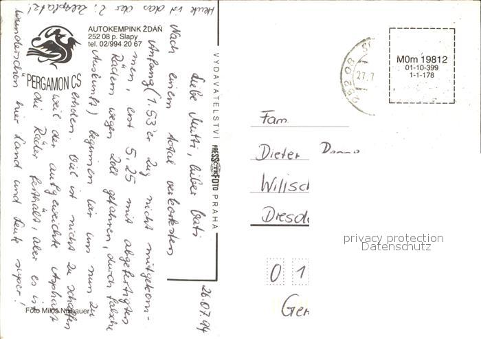 old postcard Slapske Prehrada Autokempink Zdan Fliegeraufnahme Zeltplatz Strand Bar postalisch gelaufen Erhaltung siehe scans