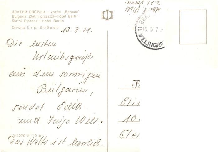 old postcard Slatni Pjasazi BG Hotel Berlin Strand postalisch gelaufen Erhaltung siehe scans [FriedD77]
