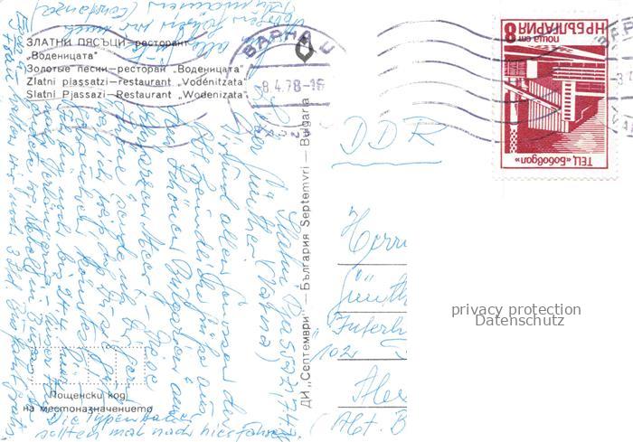 74088022 old postcard Slatni Pjasazi BG Restaurant Wodenizata postalisch gelaufen Erhaltung siehe scans [WerneD78] KatCode: 11090