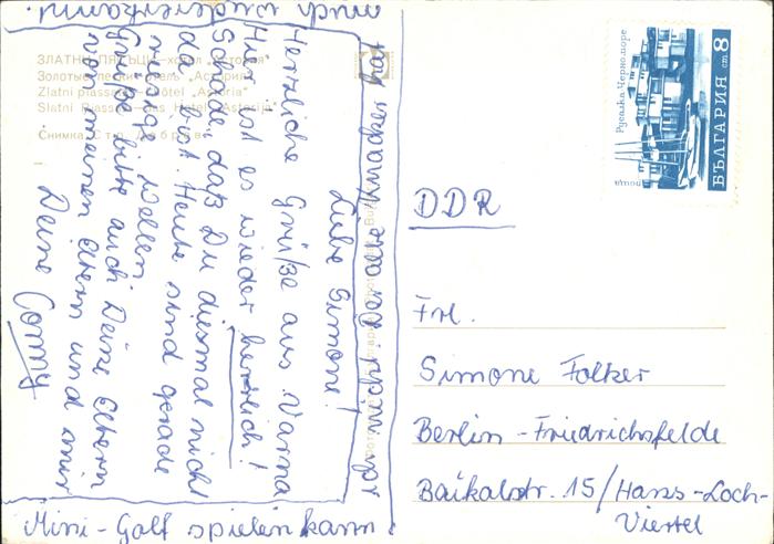 old postcard Slatni Pjasazi Hotel Actopnr postalisch gelaufen Erhaltung siehe scans
