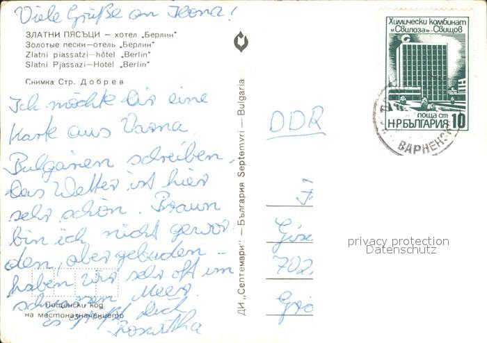 old postcard Slatni Pjasazi Hotel Berlin postalisch gelaufen Erhaltung siehe scans