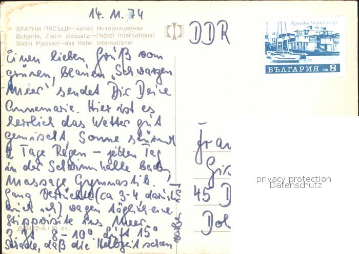 old postcard Slatni Pjasazi Hotel International postalisch gelaufen Erhaltung siehe scans