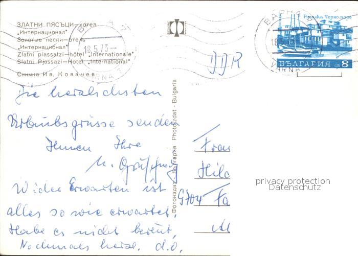 old postcard Slatni Pjasazi Hotel International postalisch gelaufen Erhaltung siehe scans