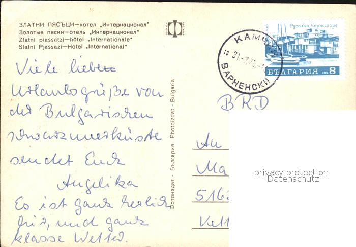 old postcard Slatni Pjasazi Hotel International postalisch gelaufen Erhaltung siehe scans