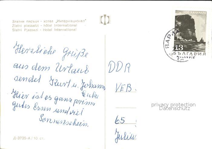 old postcard Slatni Pjasazi Hotel International postalisch gelaufen Erhaltung siehe scans