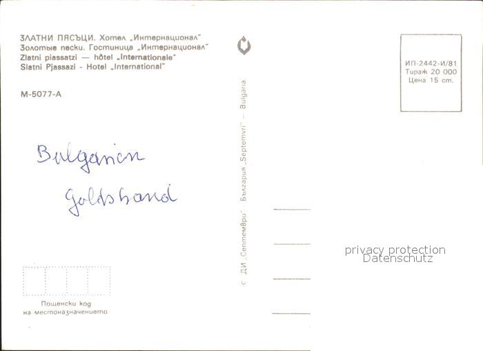 Slatni Pjasazi Hotel International Strand postalisch nicht gelaufen Erhaltung siehe scans