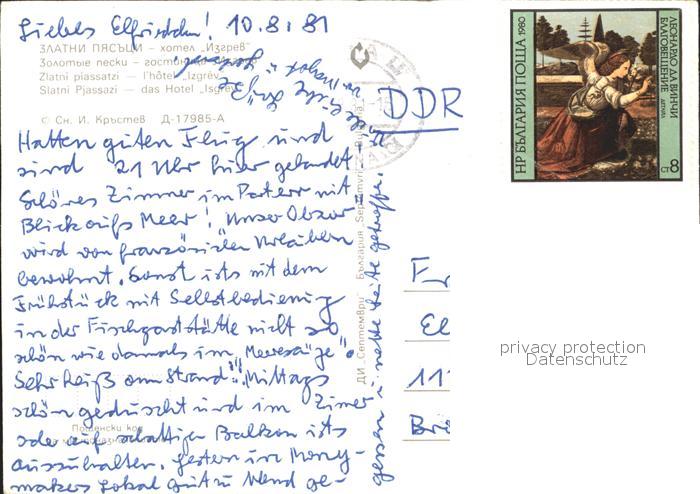 old postcard Slatni Pjasazi Hotel Izgrev postalisch gelaufen Erhaltung siehe scans