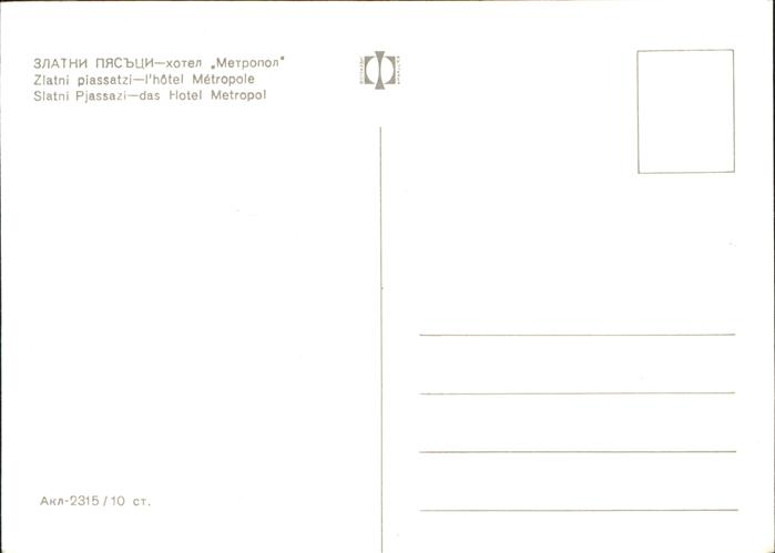 Slatni Pjasazi Hotel Metropol postalisch nicht gelaufen Erhaltung siehe scans