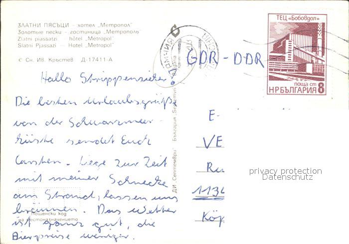 old postcard Slatni Pjasazi Hotel Metropol postalisch gelaufen Erhaltung siehe scans