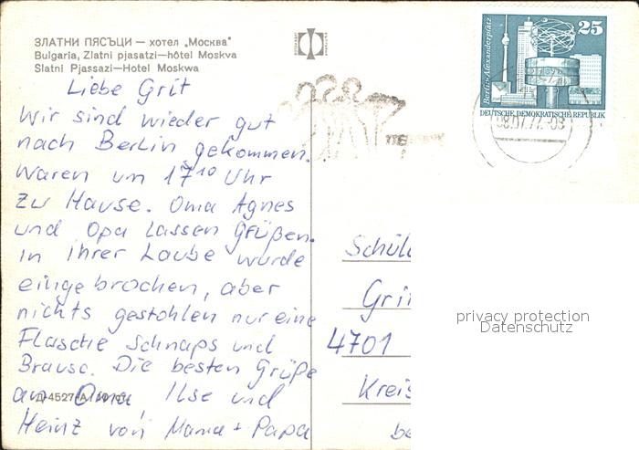 old postcard Slatni Pjasazi Hotel Moskva postalisch gelaufen Erhaltung siehe scans [WerneD78 kt117box]