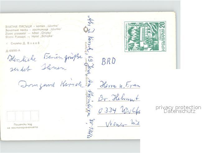Slatni Pjasazi Hotel Schipka bei Nacht postalisch nicht gelaufen Erhaltung siehe scans