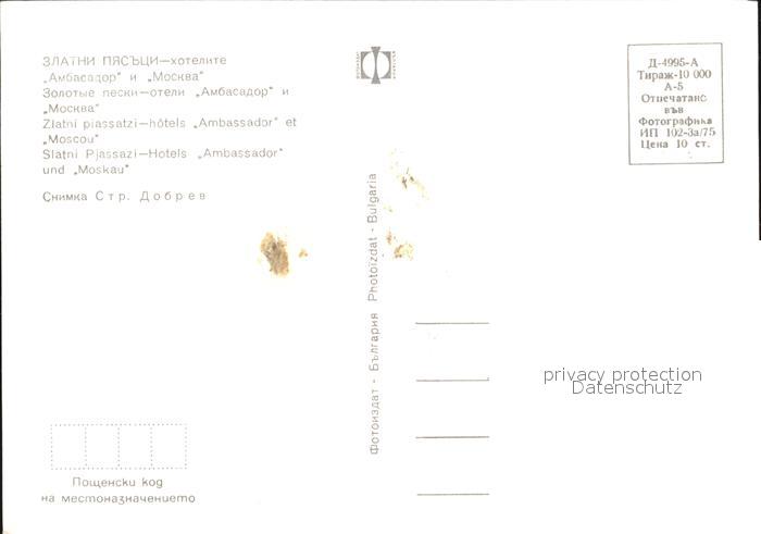 Slatni Pjasazi Hotels Ambassador und Moskau postalisch nicht gelaufen Erhaltung siehe scans