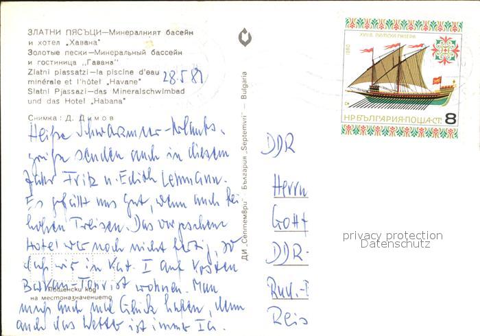 Slatni Pjasazi Mineralschwimmbad Hotel Habana postalisch nicht gelaufen Erhaltung siehe scans