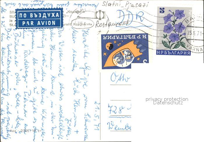 old postcard Slatni Pjasazi Restaurant Koscharata postalisch gelaufen Erhaltung siehe scans