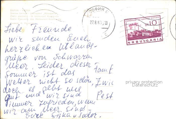 old postcard Slatni Pjasazi Restaurant Koscharata postalisch gelaufen Erhaltung siehe scans