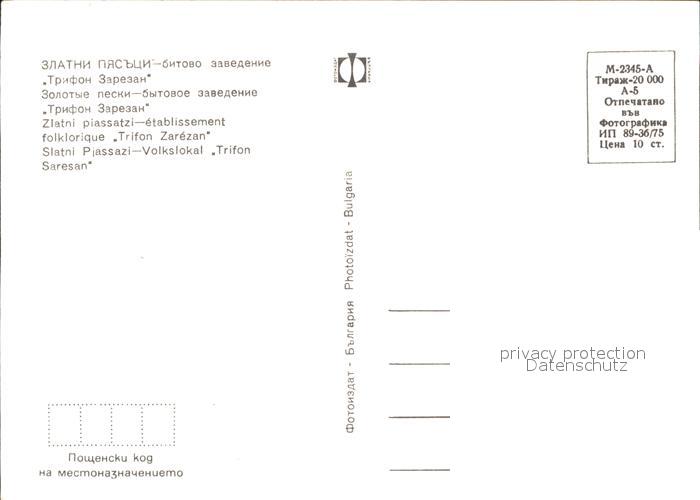 Slatni Pjasazi Restaurant Trifon Saresan postalisch nicht gelaufen Erhaltung siehe scans