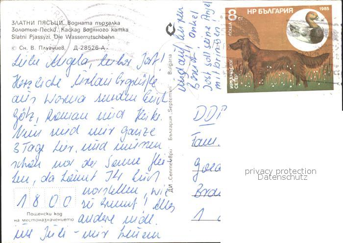old postcard Slatni Pjasazi Schwimmbad Rutschbahn postalisch gelaufen Erhaltung siehe scans