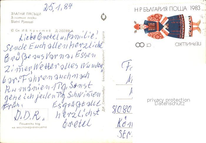 old postcard Slatni Pjasazi Strand Hotel Segelboote postalisch gelaufen Erhaltung siehe scans