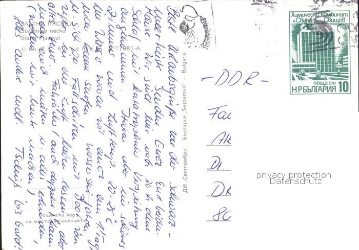 old postcard Slatni Pjasazi Strand Hotel Wasserski postalisch gelaufen Erhaltung siehe scans