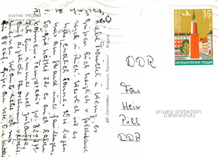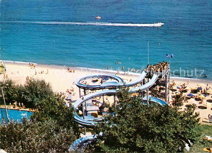 old postcard Slatni Pjasazi Wasserrutsche Strandpartie postalisch gelaufen Erhaltung siehe scans [WerneD78]