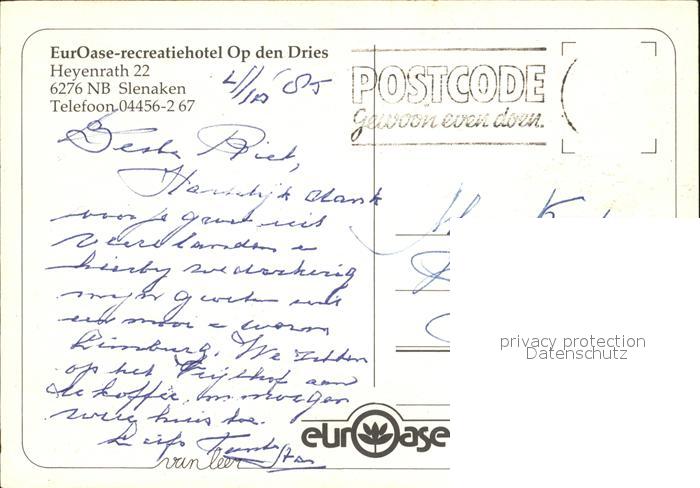 old postcard Slenaken EurOase Recreatiehotel Dries postalisch gelaufen Erhaltung siehe scans
