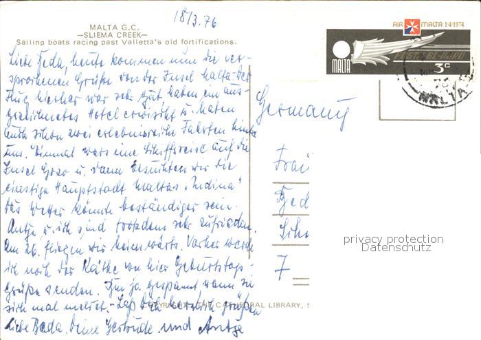 old postcard Sliema Creek Segelboote postalisch gelaufen Erhaltung siehe scans