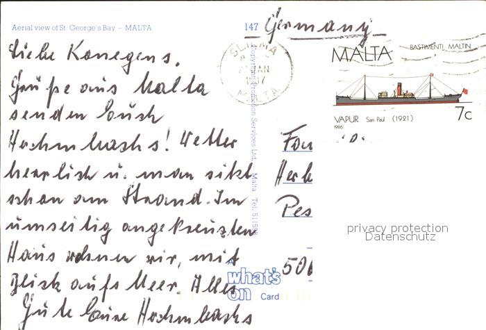 old postcard Sliema St. George’s Bay Fliegeraufnahme postalisch gelaufen