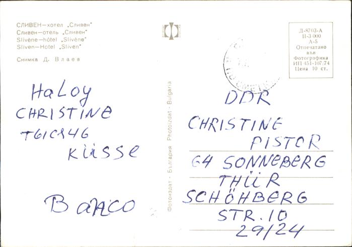 old postcard Sliven Hotel Sliven postalisch gelaufen Erhaltung siehe scans