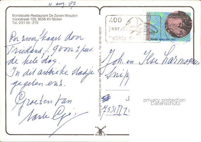 old postcard Sloten Sleat De Zeven Wouden postalisch gelaufen Erhaltung siehe scans