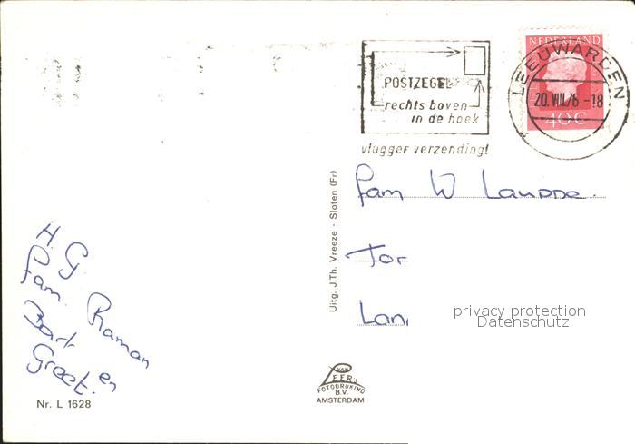 old postcard Sloten Sleat Windmuehel Strassenpartie Kirche postalisch gelaufen Erhaltung siehe scans