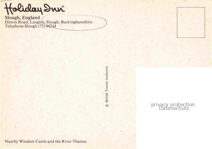74156940 Slough Berkshire UK Windsor-Castle Round-Tower Themse Schwaene Holiday-Inn Schloss Fluss Burganlage postalisch nicht gelaufen Erhaltung siehe scans [Karloger] KatCode: 11570UKJ1J11MD