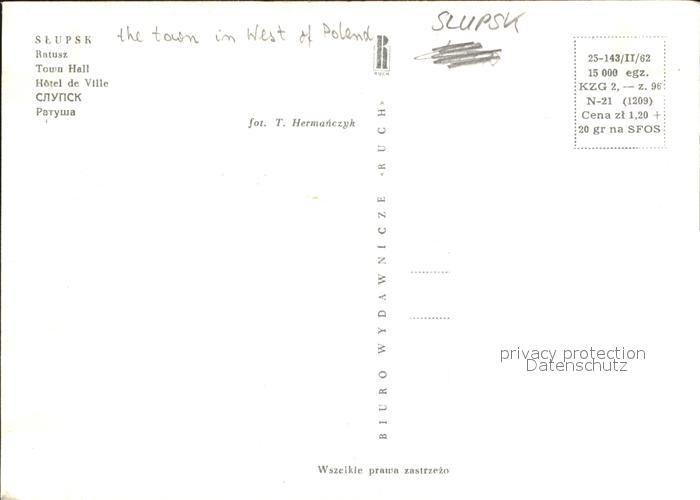 Slupsk Rathaus postalisch nicht gelaufen Erhaltung siehe scans