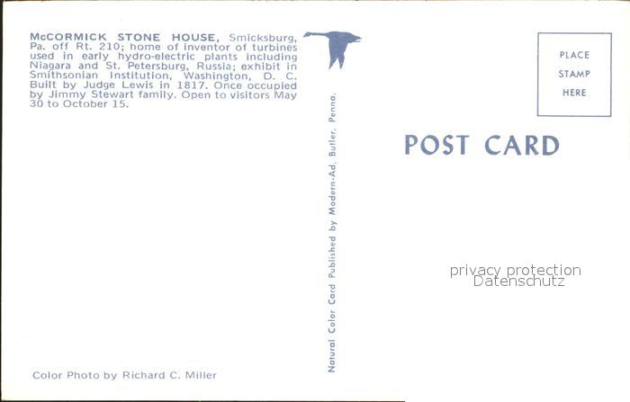 72161838 Smicksburg McCormick Stone House postalisch nicht gelaufen Erhaltung siehe scans KatCode: 14140410000000