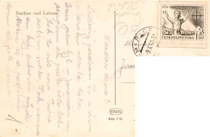 73958209 old postcard Smirice nad Labem Smirschitz CZ Strassenpartie postalisch gelaufen Erhaltung siehe scans [FriedD77] KatCode: 11520