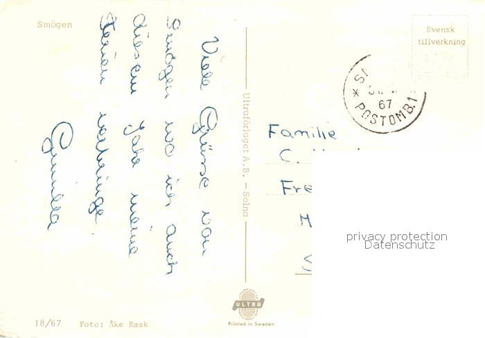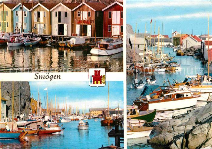 old postcard Smoegen Hafen Bootshaeuser Boote postalisch gelaufen Erhaltung siehe scans [FriedD77]