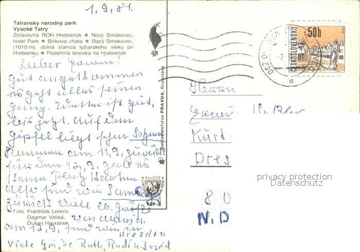old postcard Smokovce Vysoke Tatry Hotel Park postalisch gelaufen Erhaltung siehe scans