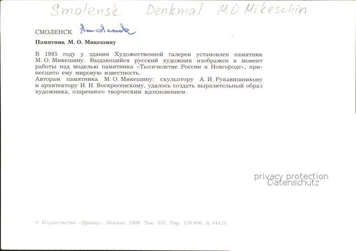 Smolensk Denkmal Mikeschin postalisch nicht gelaufen Keine Postkarte (siehe scan) Erhaltung siehe scans